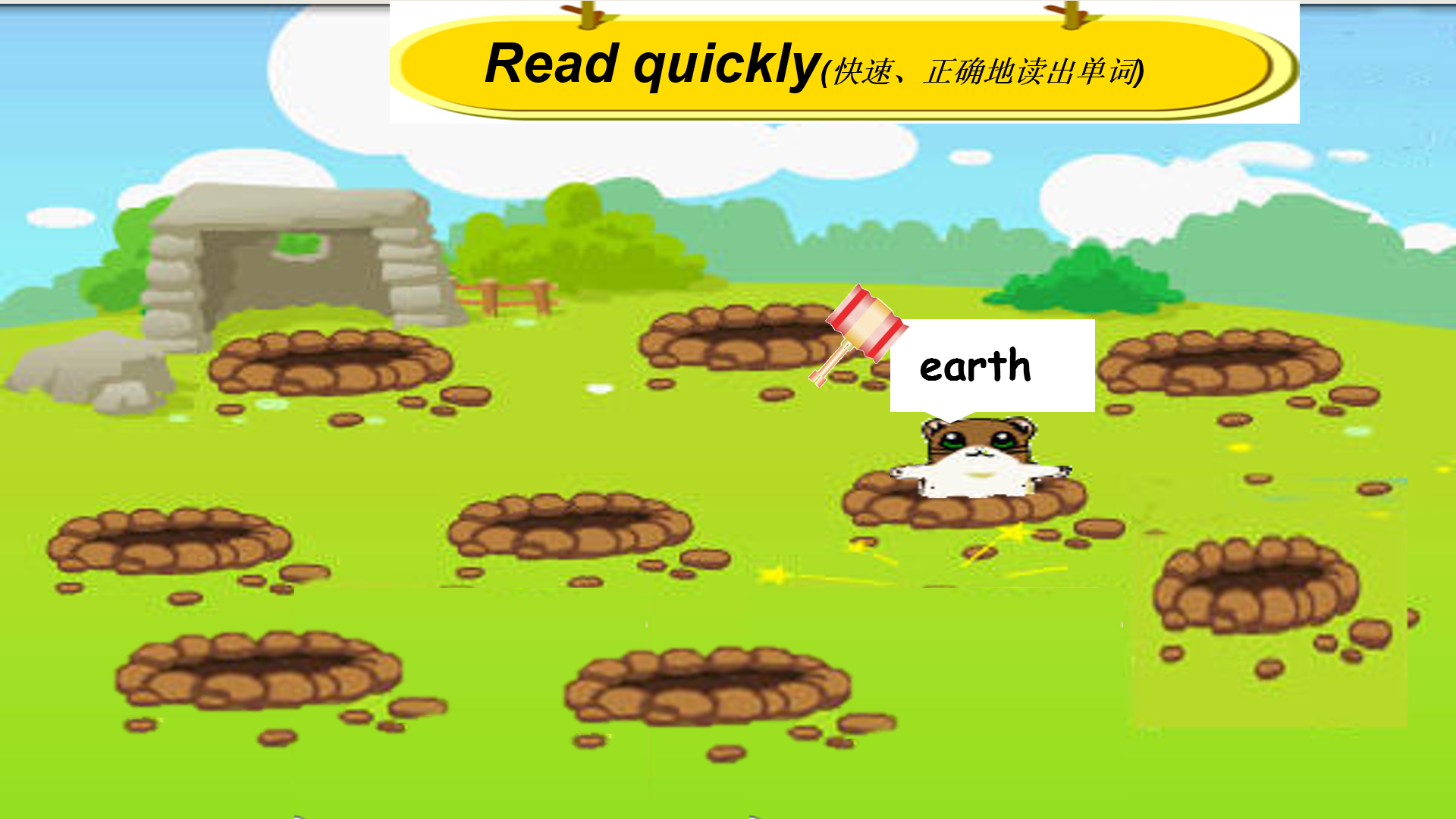 a、教师利用词卡做了个大小声的活动,当学生掌握较好时开始打地鼠游戏
