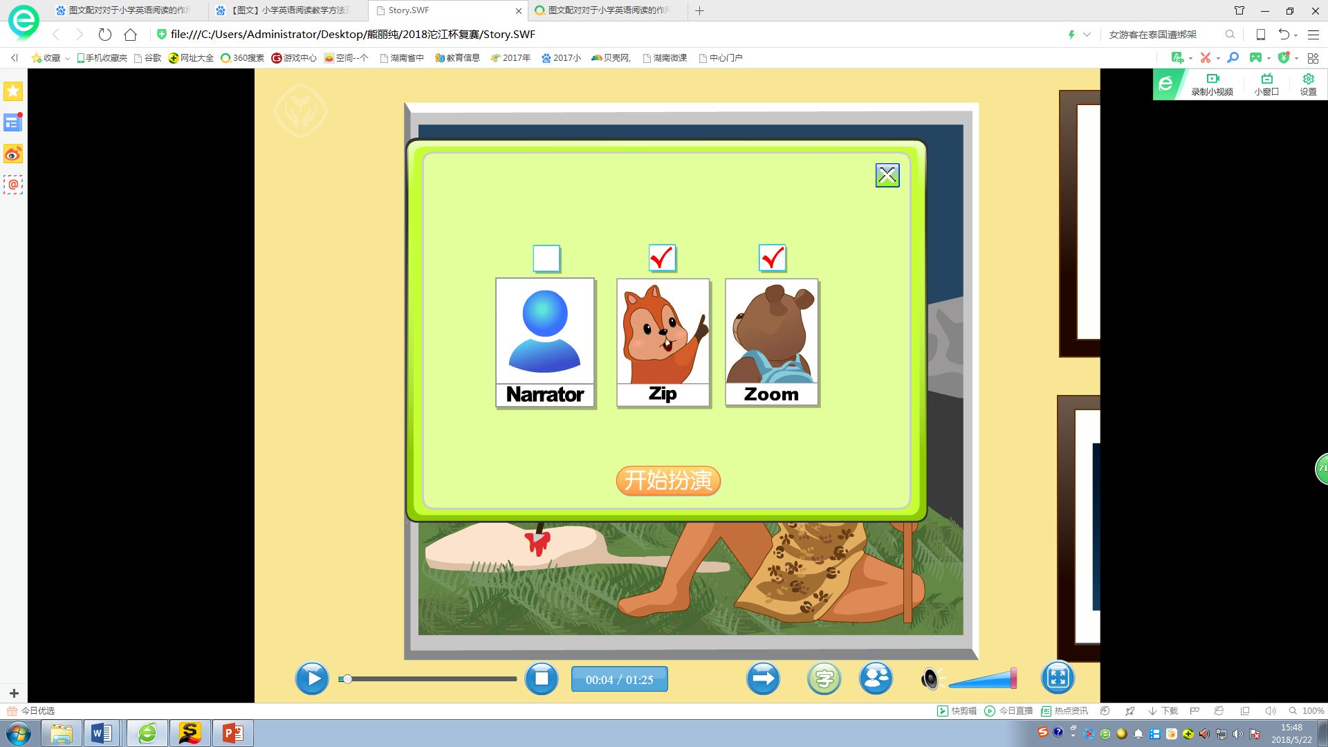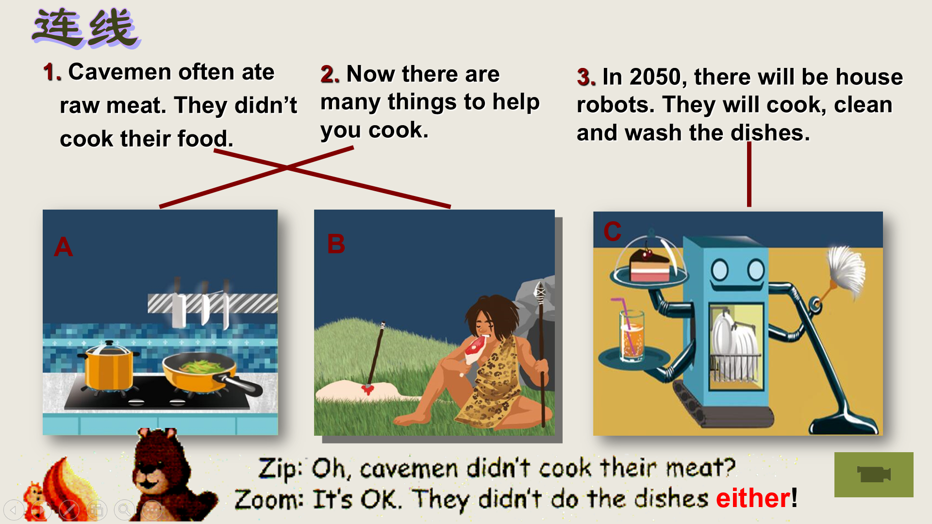 按照先前教师的示范带读请女生为Zip配音,男生为Zoom配音。