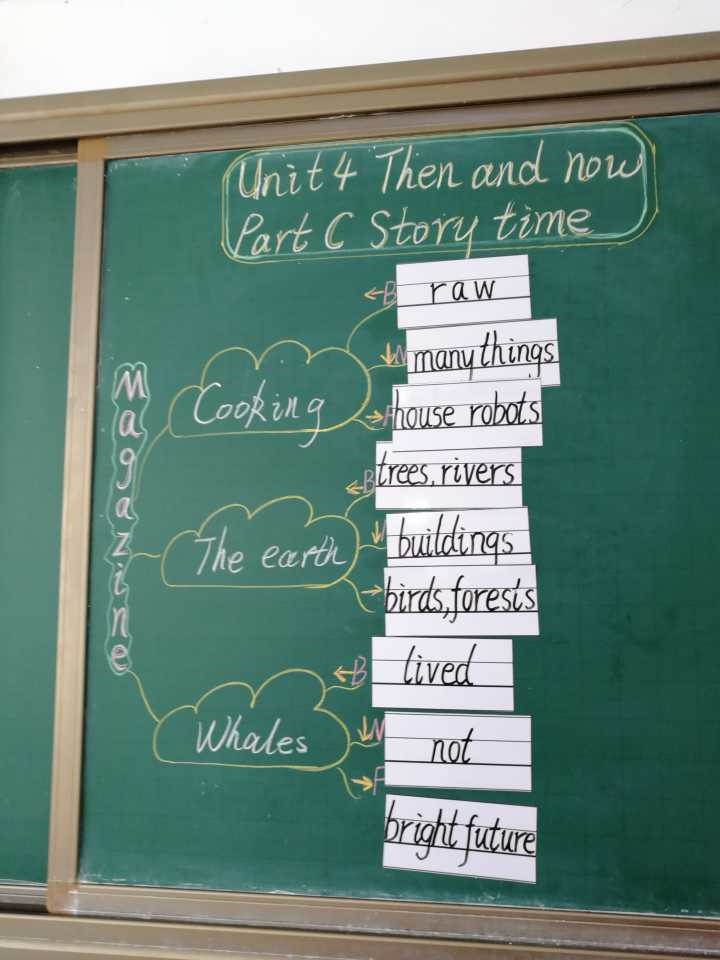 认知: 联系,归纳,推测等技能。观察并归纳故事的横向板块(Cooking The earth Whales),纵向板块(Before Now In the future ),提高自学能力。