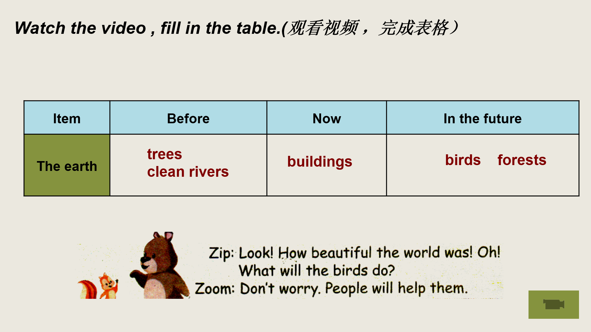 教师问:How did the earth change? 请学生仔细观看这一部分的课文动画,然后完成表格。