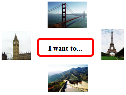 【设计意图】通过学习,学生自然产生想去看看这些名胜古迹的想法,老师及时通过展示,教会学生表达自己的旅游愿望。