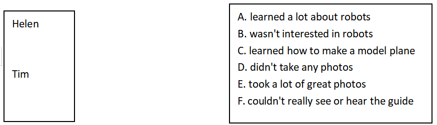 (1). What did Helen and Tim do in the museum? Match the persons with their activities.