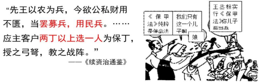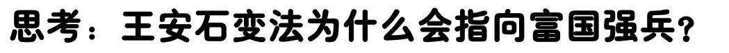 (设计意图:让学生由王安石变法内容反推变法的目的,再由目的的指向性引发学生思考变法的背景。打破常规学习思维方式,以反推的形式调动学生思考的积极性,让历史结论由学生自己生成。)
