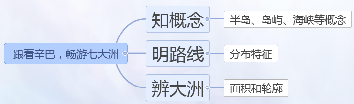 这节课我们跟着辛巴环游世界,认识了一些基本概念,了解了七大洲的分布、轮廓和面积,而这些认识是无数科学家探究和努力拼搏的结果,我们以后要学习这种勇于探索的精神,长大为社会多做贡献。本节课到此结束,谢谢大家!