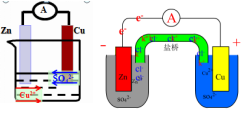 ①左边烧杯中的锌片逐渐溶解,右边烧杯中的铜片上有红色固体析出 ②取出盐桥,铜片上不再有固体析出,锌片上也不再溶解 |