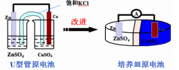 【思考与交流】对比U型管盐桥原电池,培养皿原电池的优缺点是什么?(从电流大小、稳定性、药品用量三个方面思考,并填写实验报告)