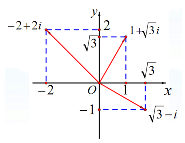师:我们已经能够用角度和长度来表示复数了,那我们能不能根据图象用同样的方法来表示下列图象中的两个复数呢?