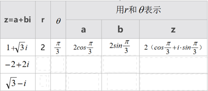 2、由三个具体的复数三角表示为基础,由特殊到一般得到一般形式下复数的三角形式