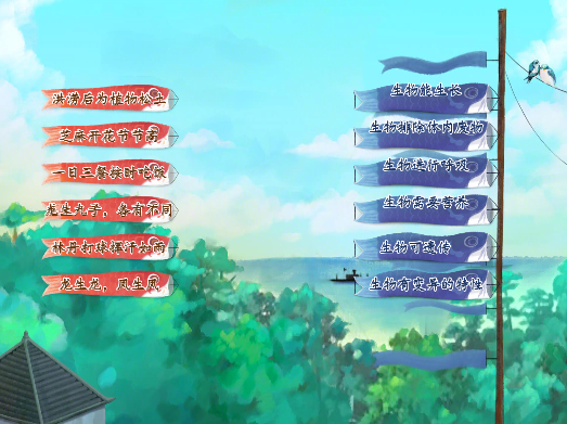1.连线题:利用鲤鱼旗配对游戏 ,让学生区分生物特征。