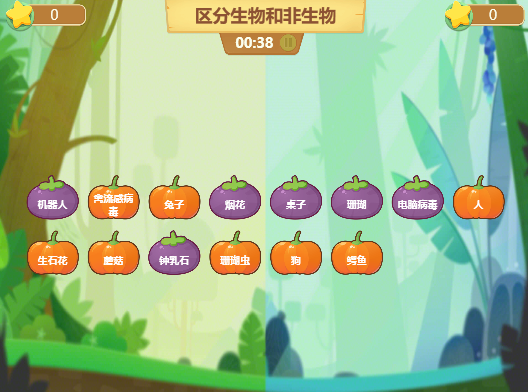 2.区分生物和非生物:利用希沃软件制作切西瓜游戏,进行分组PK。