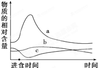 A. 曲线b表示糖尿病患者血液中胰岛素相对含量的变化趋势