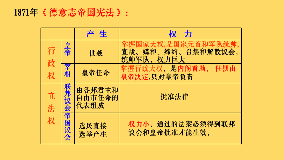 1、确立标志:1871年德意志帝国宪法颁布