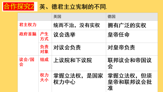 探究二:英、德君主立宪制的不同。