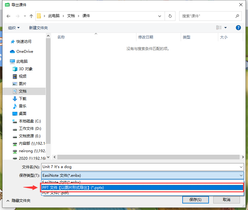 2.在导出弹框中,选择保存类型为“PPT文件”;